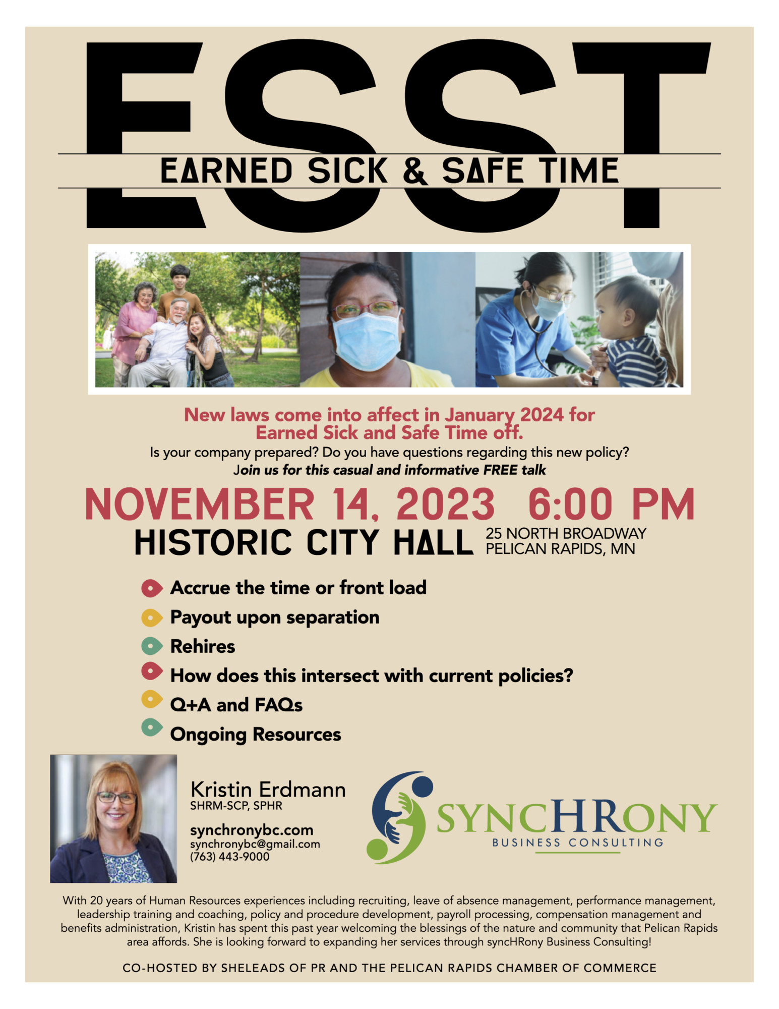 New laws come into affect in January 2024 for Earned Sick and Safe Time Off. Is your company prepared? Do you have questions regarding this new policy?